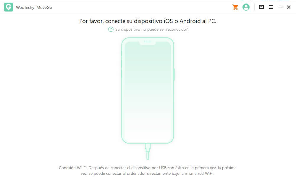 Paso 1. Descarga e instala iMoveGo en tu ordenador. A continuación, conecta tu teléfono al ordenador a través de un cable USB o conexión WIFI según se te pida.