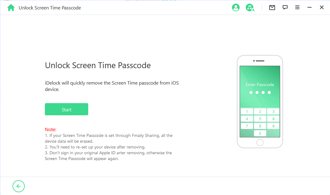Click "Start" to begin the process of removing Screen Time Passcode.