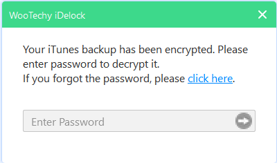 - If your iTunes backup has been encrypted, please enter the password to decrypt the backup to proceed.